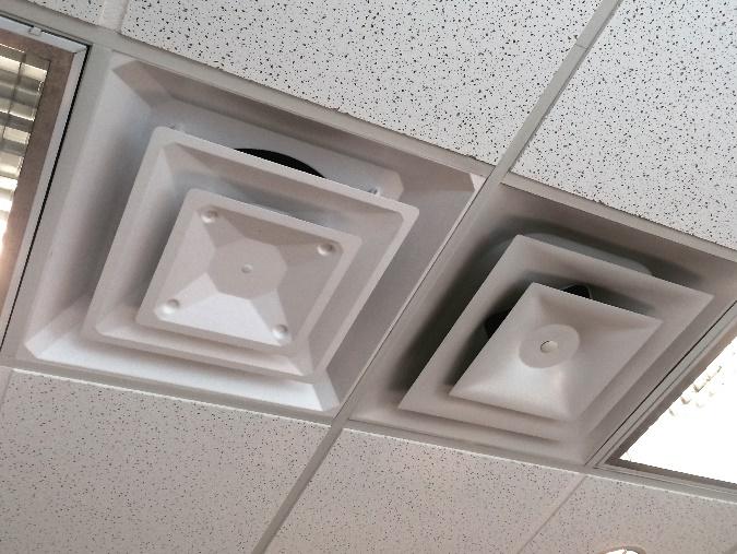 HVAC Ceiling Vents: PVC .120” Gauge Designed to be a metal replacement, these vents are used in fast food restaurants. Affordable, easy cleaning and non-corroding. Produced in White, Beige, and Black to match ceiling décor. Tooling was modular for a variety of duct connection diameters. Displayed 6” and 24” duct sizes.