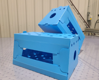 Die Cut folding tote bins. Lightweight durable, reusable packaging